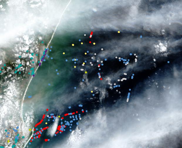 Predicted floating plastic locations off the coast of South Africa. Image Credits: EPFL