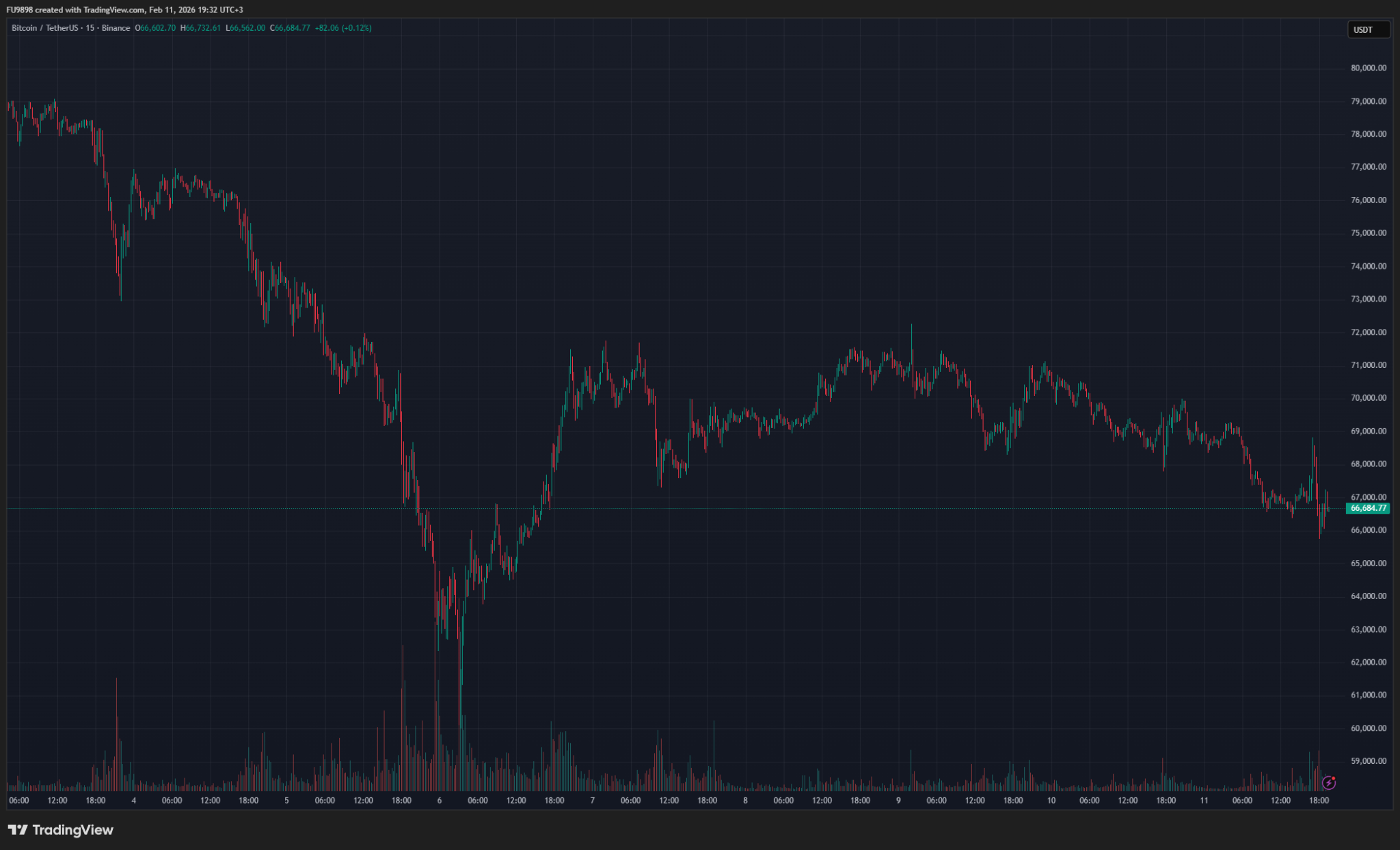 A graph showing the drop in Bitcoin price.