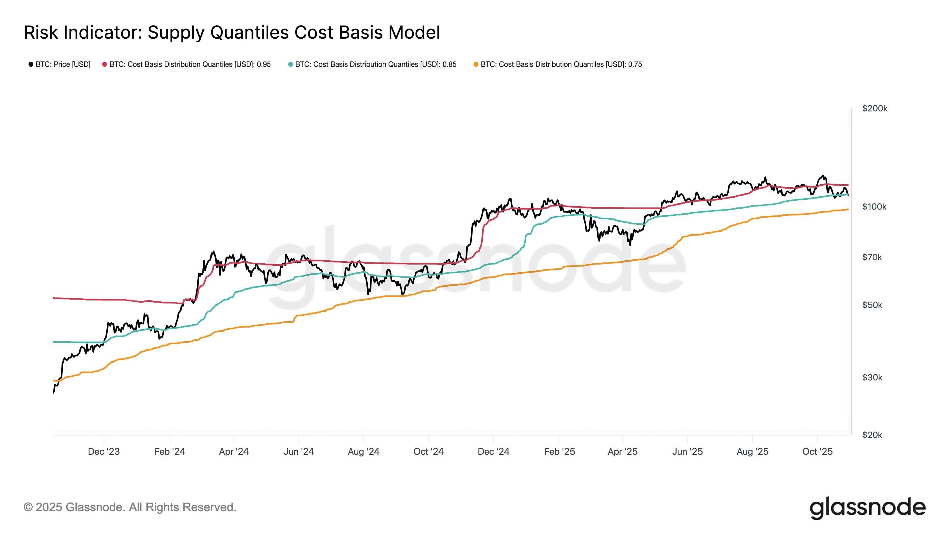 The level in question is part of Glassnode’s “Supply Quantiles Cost Basis Model.” The model reflects price levels corresponding to important investor profitability thresholds.