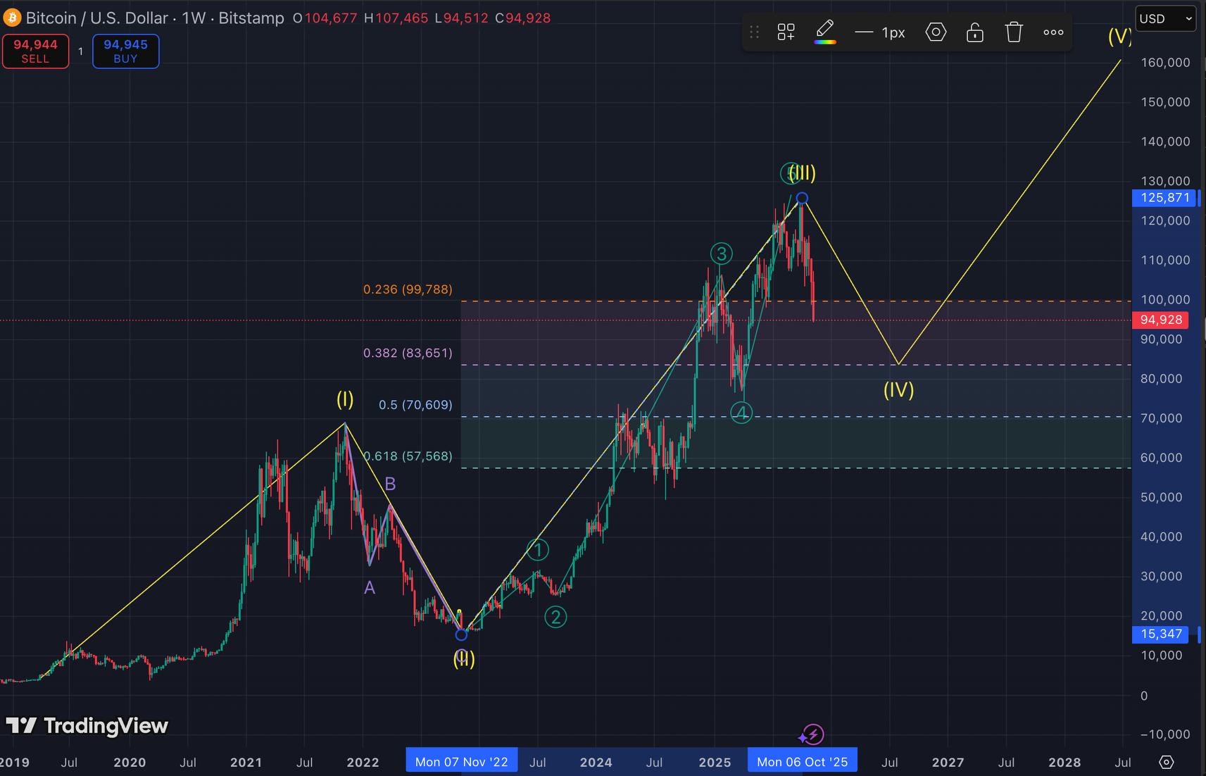 He noted that to a breakdown below the 23.6% Fibonacci retracement level at just below $100,000 opened the path to the next key support level, sitting at around $84,000.