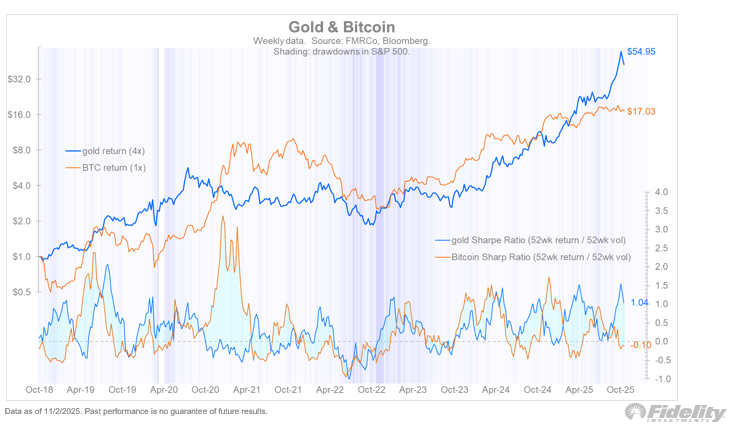 Despite the recent pullback, gold is still up by a whopping 54% on a year-to-date basis. In the meantime, Bitcoin is barely managing to remain in the green with an extremely modest 2025 gain of roughly 9%.