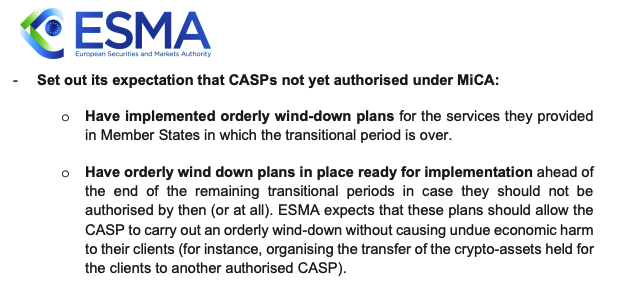 An excerpt from ESMA’s statement on MiCA transitional measures. Source: ESMA