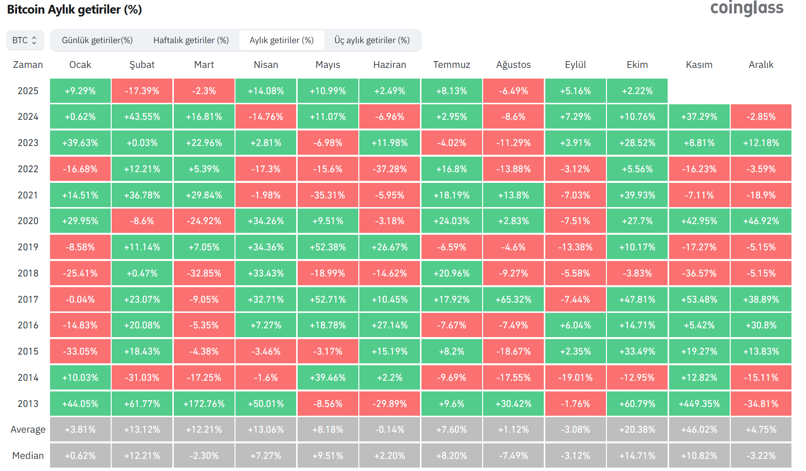 When we look at Bitcoin's performance over years and months, we notice that declines are concentrated in certain months and increases are concentrated in certain months.