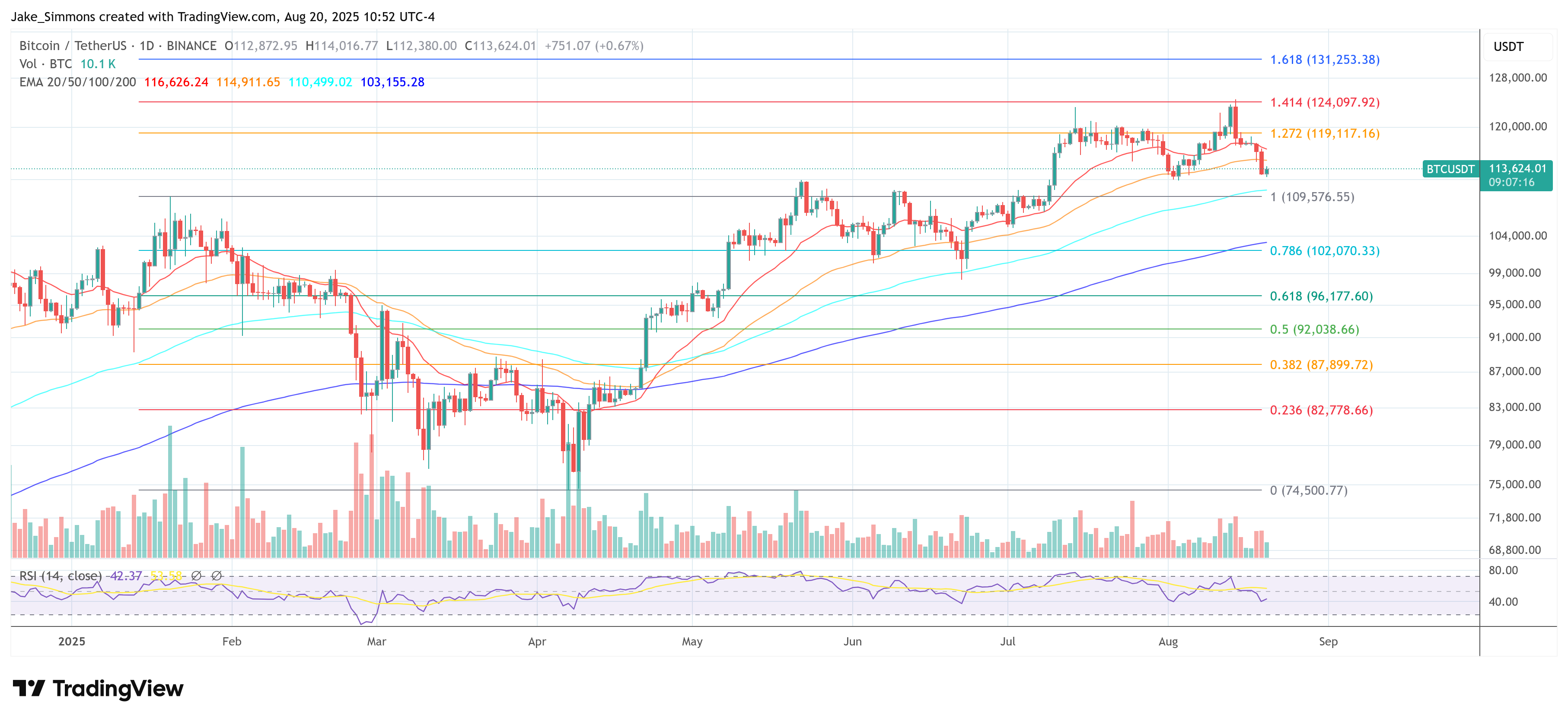 At press time, BTC traded at $113,624.