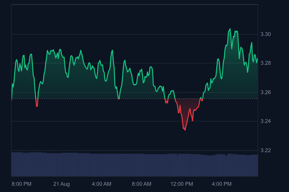 Chart showing today's movements in the TON price.