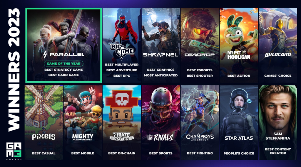 The Gam3 Awards, hosted by GAM3S.GG, formerly Polkastarter Gaming, had a total of 40 finalists from 214 nominated games. The other Game of the Year finalist nominees were My Pet Hooligan, Wildcard, Big Time, Deadrop, and last year’s winner, Big Time.