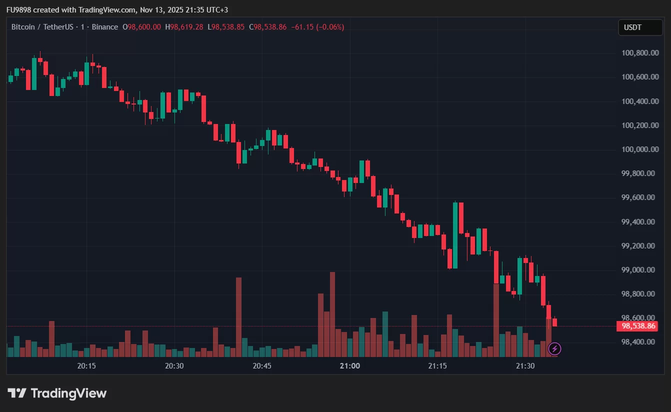 Markets have entered a period of sharp volatility again as the price of Bitcoin (BTC) has fallen below $99,000.