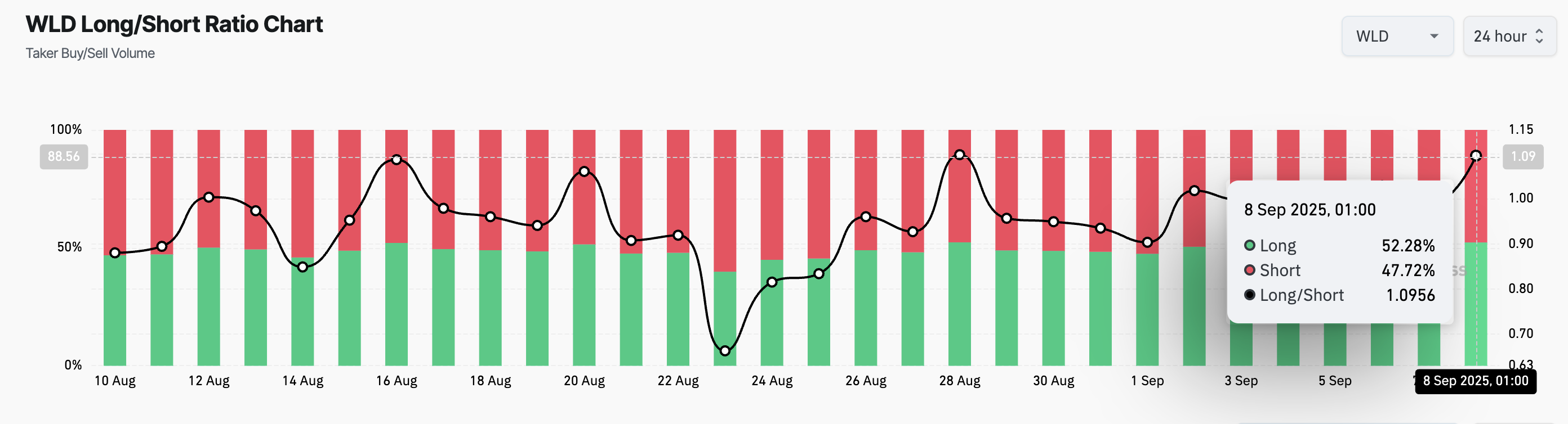 WLD Long/Short Ratio. Source: Coinglass