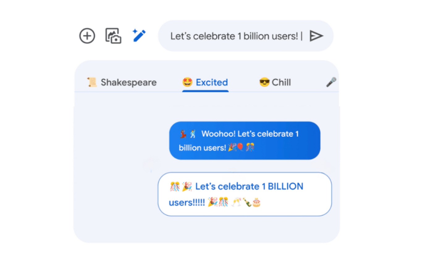 The new Voice Moods feature allows you to apply one of nine different vibes to a voice message, by showing visual effects such as heart-eye emoji, fireballs (for when you're furious) and a party popper. Google says it has also upgraded the quality of voice messages by bumping up the bitrate and sampling rate.