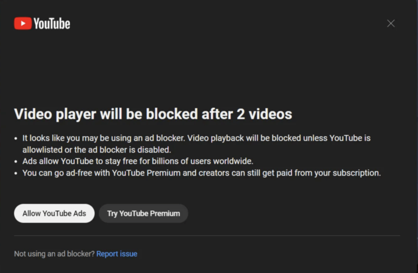 Meshkov said that assessment is accurate if you limit yourself to browser extensions (which is how most popular ad blockers are distributed). But he pointed to network-level ad blockers and alternative YouTube clients, such as NewPipe, as other approaches that can work. A recent AdGuard blog post outlined additional other steps that users can try, such as checking for filter updates, making sure multiple ad blockers aren't installed and using a desktop ad-blocking app, which should be harder to detect than an extension. (AdGuard itself offers both network-level blocking and desktop apps.)