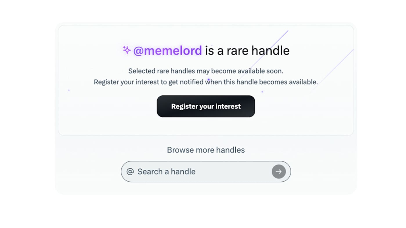 The marketplace offers two types of handles: "priority" and "rare." For priority handles, X has suggested the goal is to give people the chance to have a handle that more closely reflects their name. In practice, though, it's not at all clear how X is determining what's considered a "priority" versus a "rare" handle. I signed up for a $40/month subscription and searched for both @kbell and @karissa only to be told that both are considered "rare" and thus not available to me. I was able to "register" my "interest" in the names, and include a brief description of why I wanted the handles.